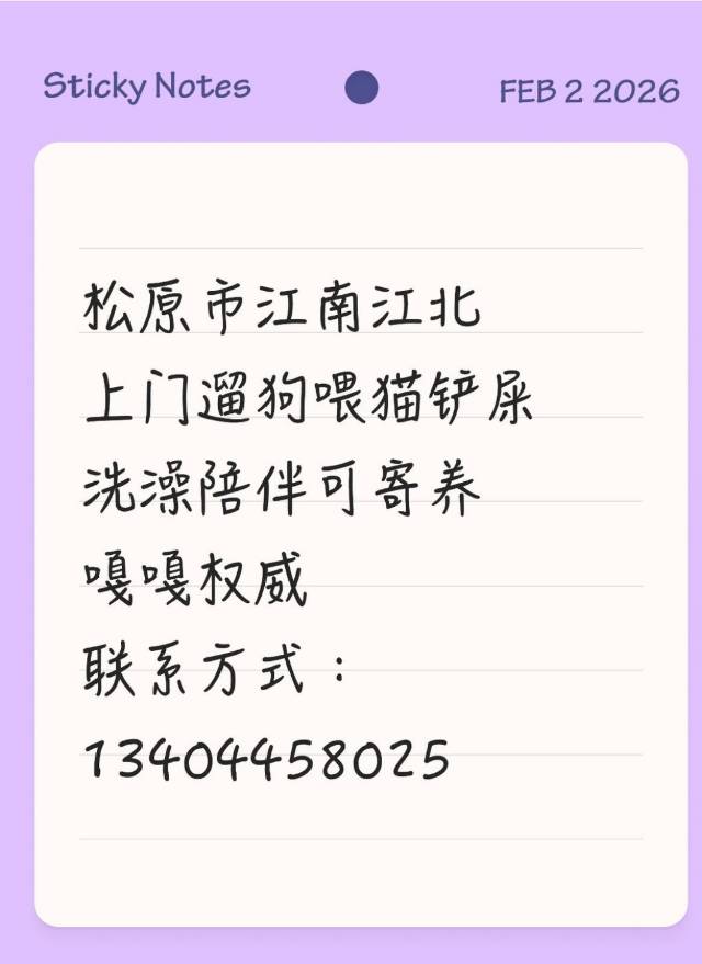 松原上门喂养小猫小狗各种宠物也可以帮忙照顾 非常有耐心上门区域:全松原市里收费标准: 三公里内25$/次 四公里内35$/次 五公里内45$/次 超过五公里私聊 需要遛狗20$/30分钟(大型犬牵引绳需自备) 服务内容 喂水喂粮铲猫砂如要喂零食罐头需主人自备 洗水盆食盆 清理猫砂盆附近卫生狗狗粪便也会帮忙处理主人需要自备方便袋铲子 全程可拍摄视频/视频通话最好家里有监控不要放贵重物品建议除宠物房间要上锁有传染病的小猫小狗不提供服务有攻击性的主包害怕 提前准备好钥匙也可以面交放到指定位置密码锁可告知当天临时密码 需要交50%定金避免爽约 价格私#宠物上门喂养 #宠物上门喂养平台 02-02