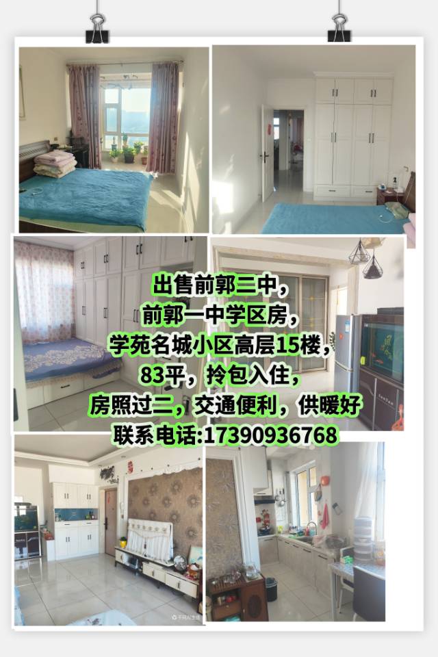 二小,前郭一中学区房,房照过二,供暖好,采光好,拎包入住